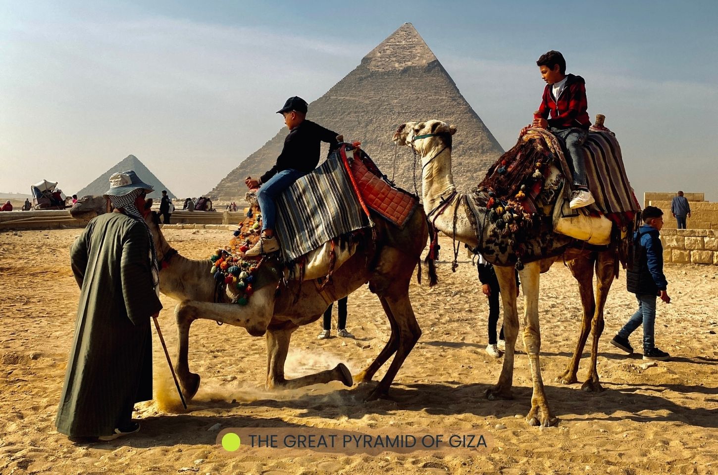 แม้อูฐจะแพร่หลายในอียิปต์หลังยุคสร้างพีระมิดหลายศตวรรษ แต่วันนี้มันกลายเป็นสัญลักษณ์ของการสำรวจทะเลทราย ช่วงเวลาที่เหมาะที่สุดคือเช้าตรู่หรือก่อนพระอาทิตย์ตก เมื่อแสงสีทองตกกระทบผิวหินปูน เกิดภาพงดงามที่ทำให้การเดินทางครั้งนี้ทั้งลึกซึ้งและน่าจดจำ
