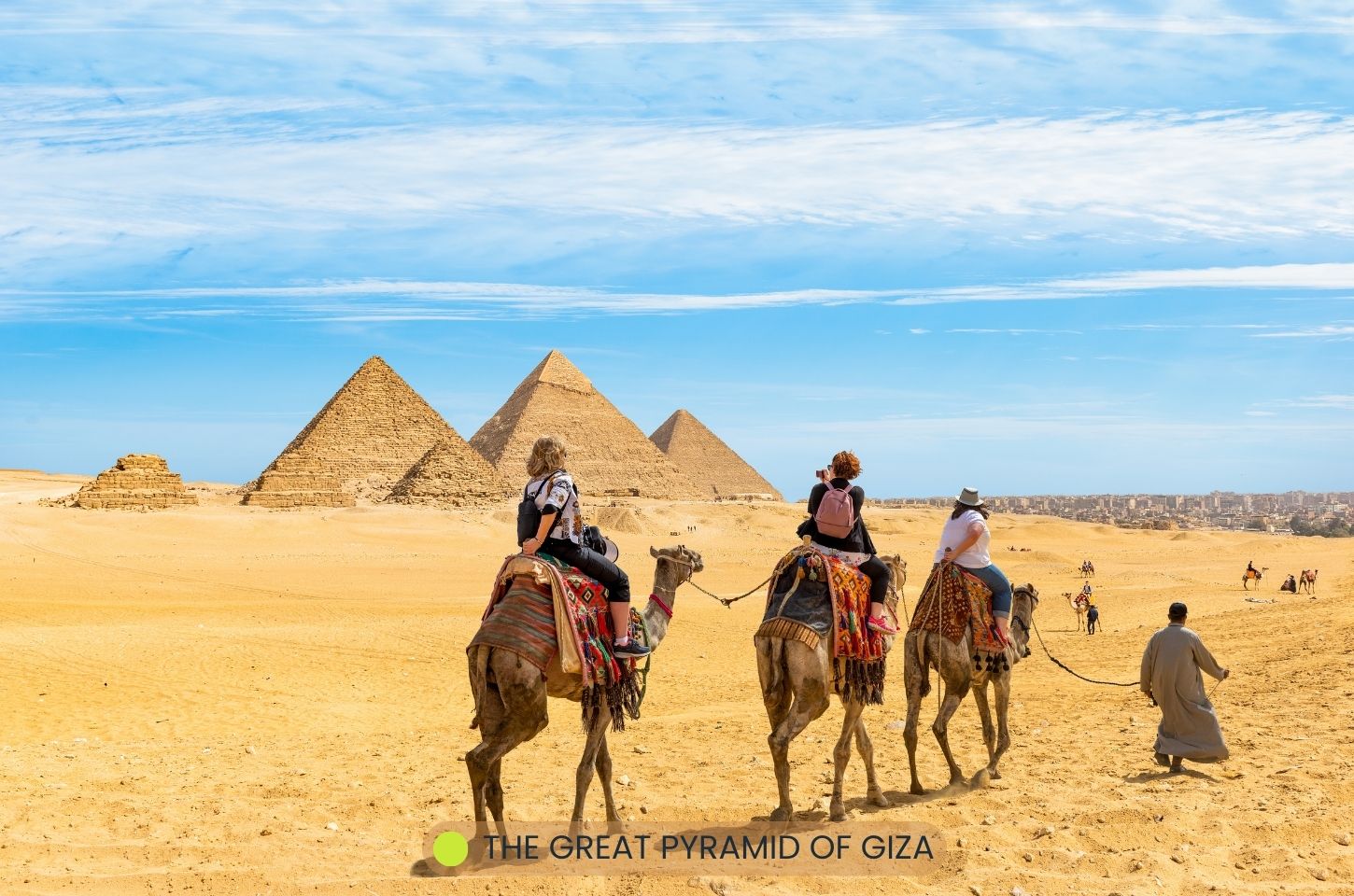 การขี่อูฐที่ The Great Pyramid of Giza คือประสบการณ์ที่เชื่อมโยงภูมิทัศน์ทะเลทรายกับประวัติศาสตร์อย่างแท้จริง อูฐหนอกเดียว (dromedary) ซึ่งปรับตัวได้ดีในสภาพอากาศร้อน จะพาคุณเคลื่อนตัวช้า ๆ รอบที่ราบสูงกิซา โดยเฉพาะจุดชมวิวด้านตะวันตกที่มองเห็นพีระมิดทั้งสามองค์เรียงตัวชัดเจน