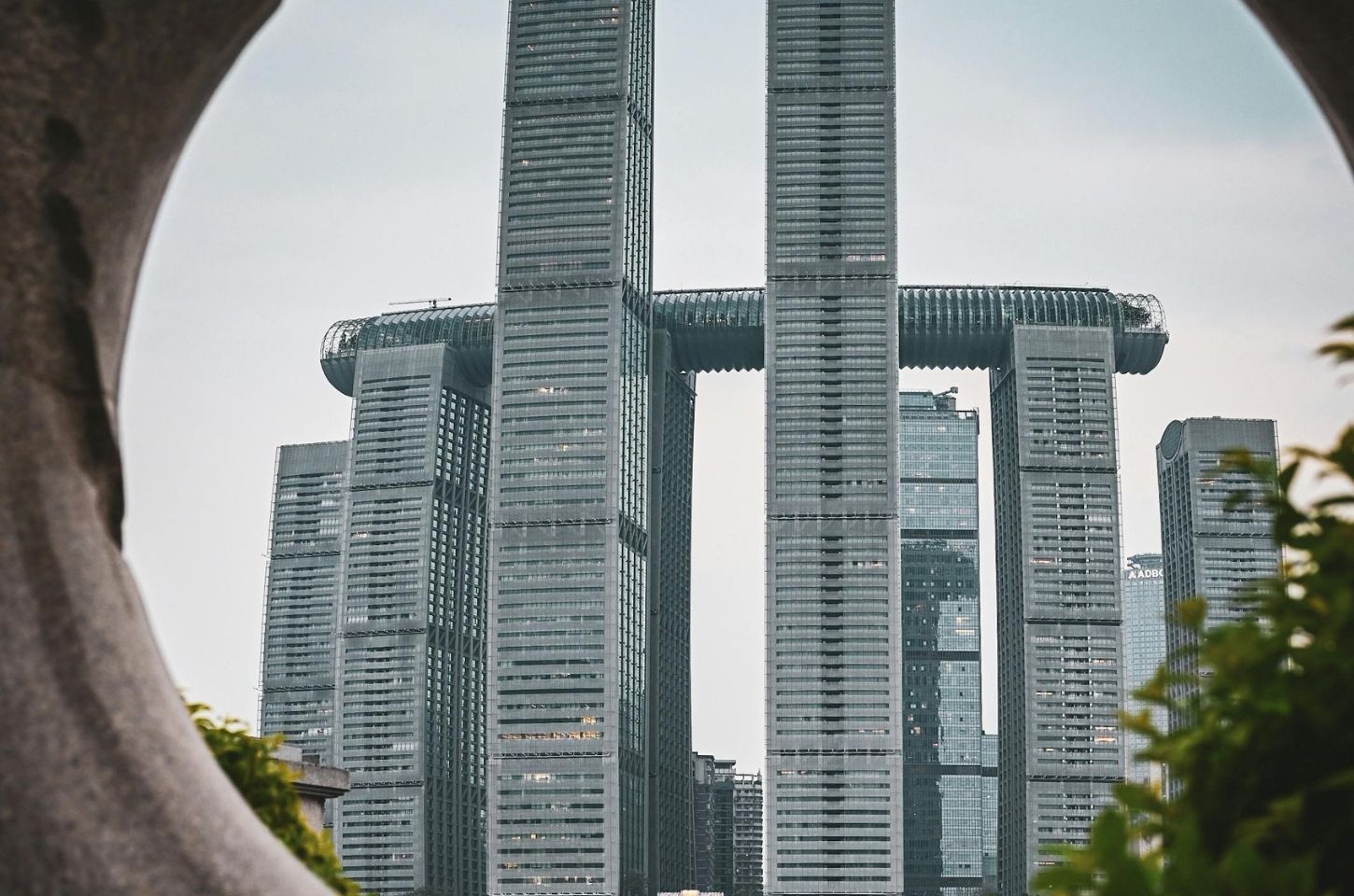 อาคารรูปวงแหวนสูงราว 100 เมตร ตั้งตระหง่านริมแยงซีเกียง โครงเหล็กวงกลมสื่อสัญลักษณ์ “เหรียญโบราณจีน” ภายในเป็นพื้นที่สำนักงานและจัดนิทรรศการ การจัดแสงกลางคืนทำให้โครงสร้างวงแหวนลอยเด่นเหนือผิวน้ำ