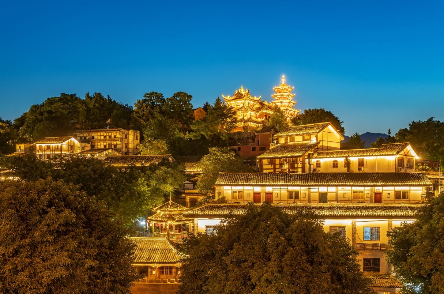 ชุมชนเก่าตั้งแต่ราชวงศ์หมิง–ชิง เคยเป็นท่าเรือการค้าสำคัญของแม่น้ำเจียหลิง ซอยหินกรวด โรงน้ำชา และงานหัตถกรรมพื้นบ้านสะท้อนวิถีชีวิตเสฉวนแท้ ๆ อาหารขึ้นชื่อคือถั่วลิสงเคลือบและเส้นหมี่รสจัด