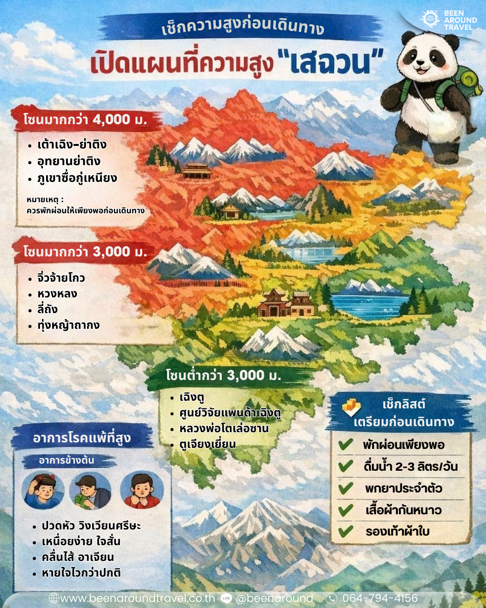 เสฉวนคือดินแดนธรรมชาติอลังการ ตั้งแต่เมืองชิล ๆ อย่างเฉิงตู ไปจนถึงยอดเขาหิมะระดับ 4,000 เมตรขึ้นไป ความสวยงามยิ่งใหญ่สมคำร่ำลือ แต่การเข้าใจ “แผนที่ความสูง” และเตรียมตัวรับมือโรคแพ้ที่สูง คือกุญแจสำคัญที่จะทำให้ทริปนี้เป็นความทรงจำที่ดี ไม่ใช่ประสบการณ์ที่ต้องลุ้นสุขภาพ วางแผนดี เที่ยวได้ครบทุกไฮไลต์ และกลับมาพร้อมรอยยิ้ม ✨