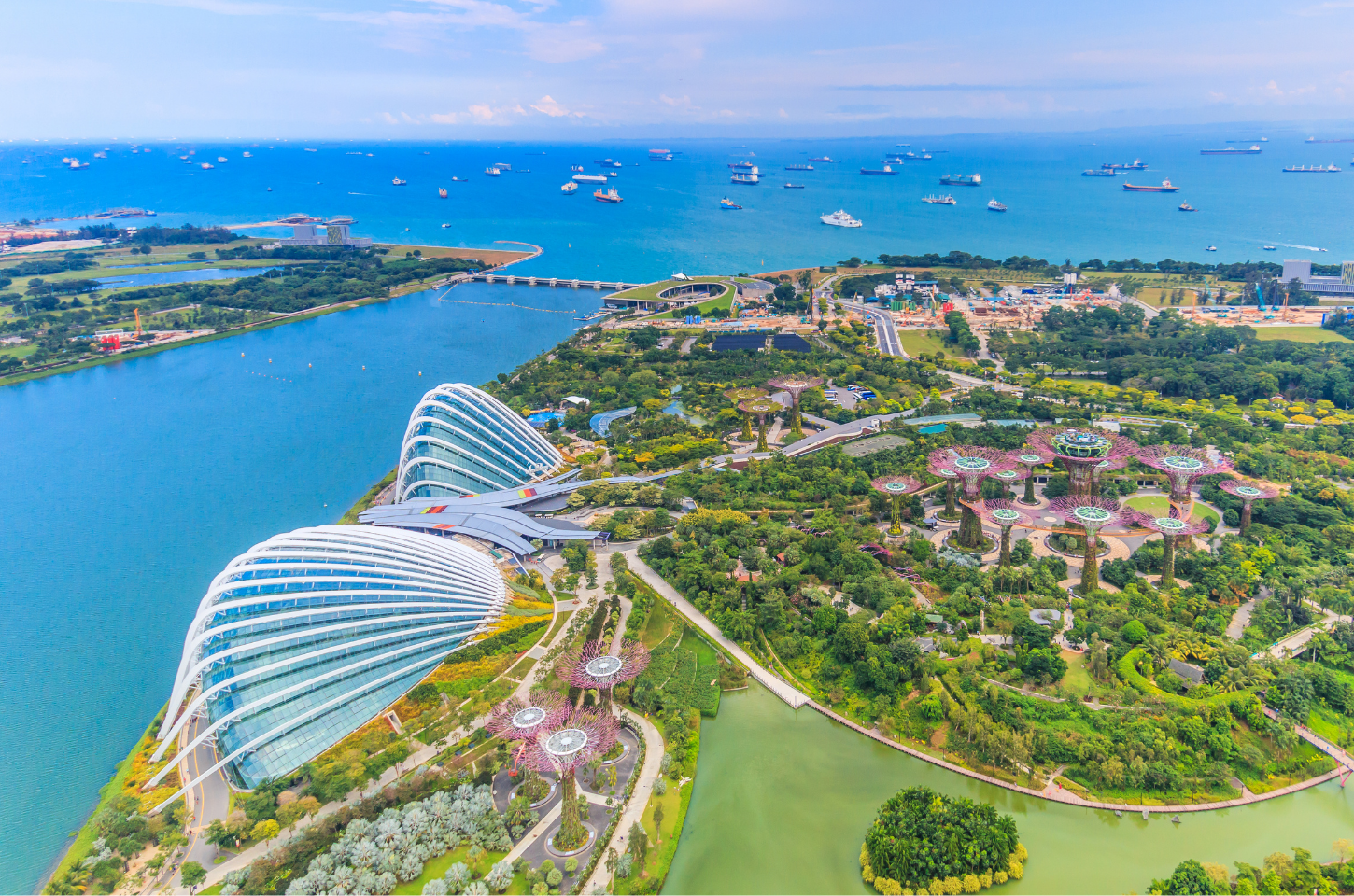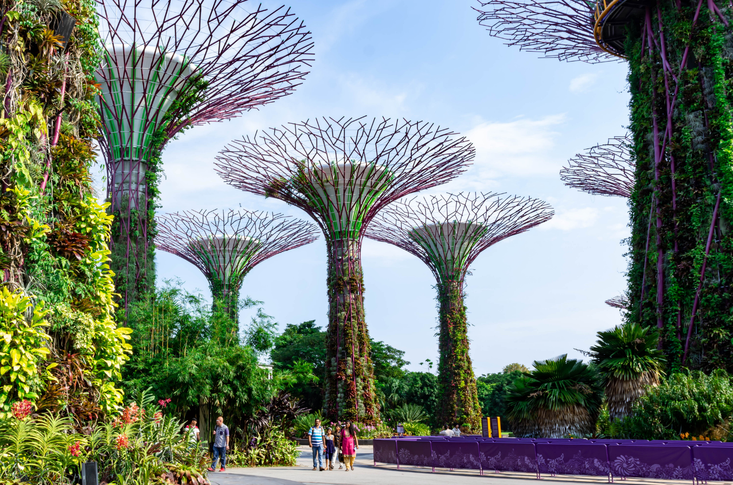 Gardens by the Bay คือสวนชื่อดังระดับโลกของสิงคโปร์ ที่โดดเด่นด้วยการออกแบบผสมผสานธรรมชาติเข้ากับเทคโนโลยีได้อย่างน่าทึ่ง ไฮไลต์สำคัญคือ Supertree Grove ต้นไม้จำลองขนาดใหญ่ที่กลายเป็นจุดถ่ายรูปยอดนิยม ภายในยังมีโดมเรือนกระจกขนาดใหญ่ เช่น Flower Dome และ Cloud Forest ที่รวบรวมพืชพรรณจากหลากหลายภูมิอากาศทั่วโลกไว้ในพื้นที่เดียว นักท่องเที่ยวสามารถเดินชมความสวยงามของสวน ถ่ายรูปกับวิวสุดล้ำ หรือรอชมโชว์ไฟยามค่ำคืนที่สร้างบรรยากาศตื่นตาตื่นใจได้อีกด้วย