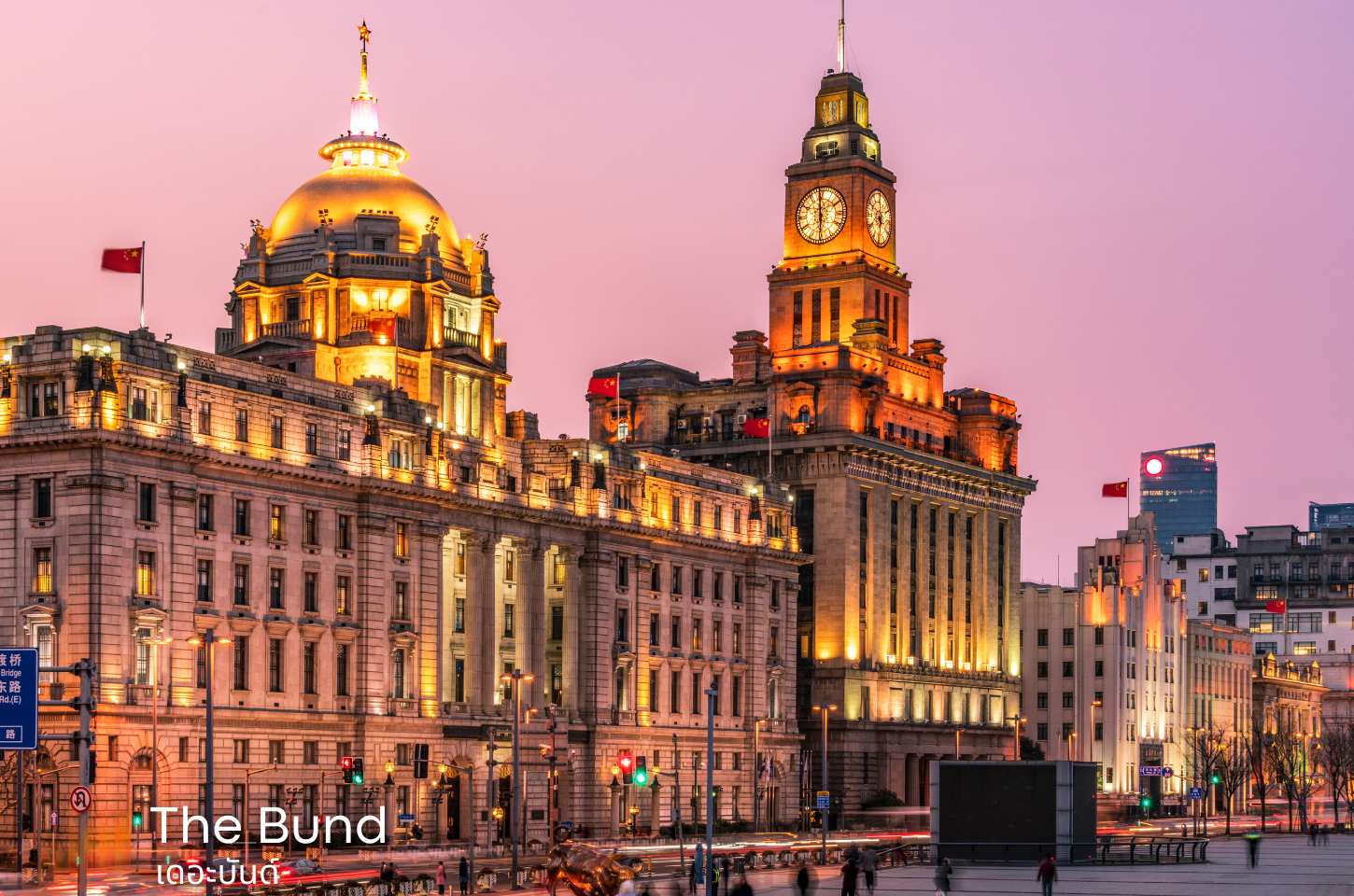 ถนนเลียบแม่น้ำหวงผู่ที่เต็มไปด้วยอาคารสไตล์ยุโรปสุดคลาสสิก ซึ่งเคยเป็นศูนย์กลางการค้าสำคัญของเซี่ยงไฮ้ในอดีต ด้านตรงข้ามคือผู่ตงที่เต็มไปด้วยตึกระฟ้า — ภาพตรงนี้จึงกลายเป็นสัญลักษณ์ของการผสมผสานระหว่างอดีตและอนาคตได้อย่างลงตัว บรรยากาศยามค่ำคืนโรแมนติกมาก แสงไฟจากทั้งสองฝั่งแม่น้ำสวยงามราวภาพวาด