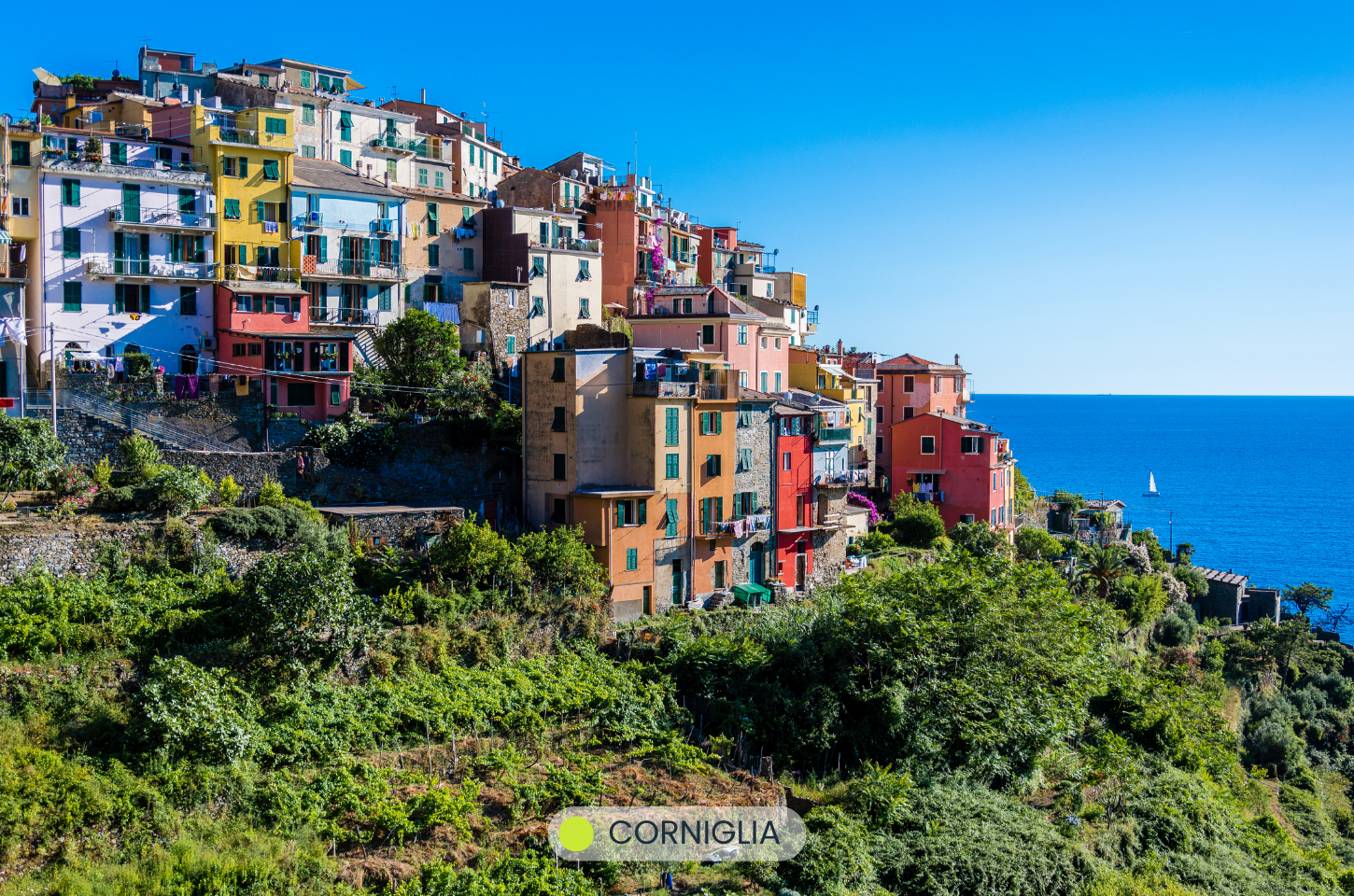 กอร์นีลยา (Corniglia) หมู่บ้านแห่งนี้ตั้งอยู่บนยอดหน้าผาสูงกว่า 100 เมตรเหนือระดับน้ำทะเล เป็นหมู่บ้านเดียวในบรรดาห้าแห่งที่ไม่มีทางออกสู่ทะเลโดยตรง ทำให้บรรยากาศที่นี่เงียบสงบและผ่อนคลายกว่าที่อื่นๆ การเดินทางมายังกอร์นีลยาถือเป็นความท้าทายเล็กน้อยแต่คุ้มค่า หลังจากลงจากสถานีรถไฟ คุณจะต้องพิชิตบันไดอิฐ Lardarina ที่มีถึง 382 ขั้น (หรือนั่งรถมินิบัส) ซึ่งจะพาคุณขึ้นไปยังใจกลางหมู่บ้าน และเมื่อไปถึง คุณจะได้รับรางวัลเป็นวิวทิวทัศน์แบบพาโนรามาที่หาไม่ได้จากที่อื่น