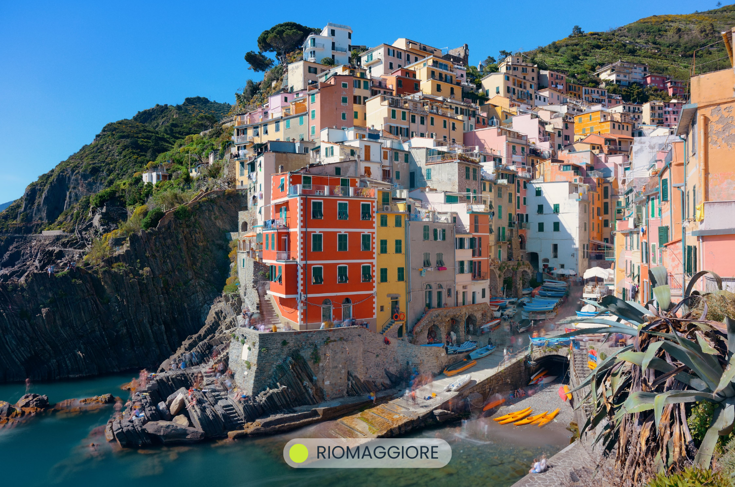 ริโอมัจโจเร (Riomaggiore) หมู่บ้านที่อยู่ทางใต้สุดของกลุ่มหมู่บ้านทั้งห้าแห่งนี้ ริโอมัจโจเรเป็นบทนำที่สมบูรณ์แบบที่สะท้อนให้เห็นถึงเสน่ห์ทั้งหมดของซินเควแตร์เร ริโอมัจโจเรเป็นหนึ่งในหมู่บ้านที่ใหญ่ที่สุดในบรรดาห้าแห่ง โดดเด่นด้วยอาคารสีสันสดใสที่ตั้งเรียงรายลดหลั่นกันไปตามหน้าผาสูงชันราวกับขั้นบันได บ้านเรือนเหล่านี้ถูกสร้างขึ้นตั้งแต่ช่วงศตวรรษที่ 13 โดยมีจุดประสงค์เพื่อป้องกันตนเองจากการรุกรานของโจรสลัดในสมัยก่อน การออกแบบที่เน้นความสูงและประตูเข้าออกที่ไม่หันหน้าเข้าสู่ทะเล จึงเป็นวิถีชีวิตที่ชาญฉลาดของชาวบ้านในอดีต